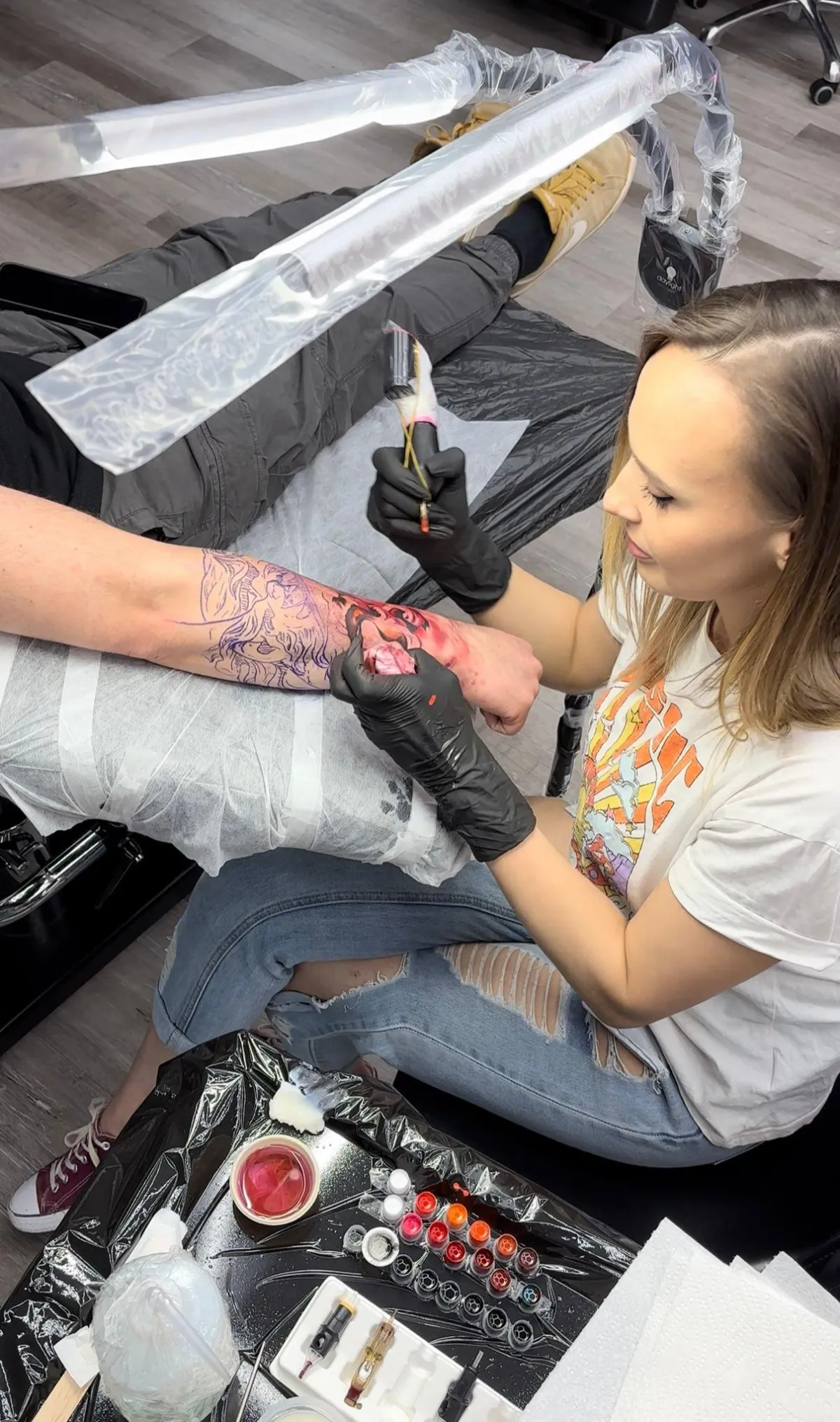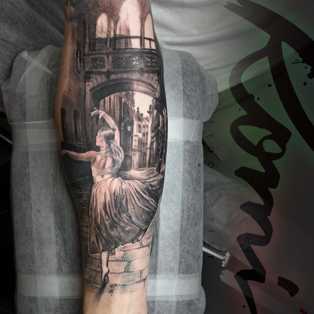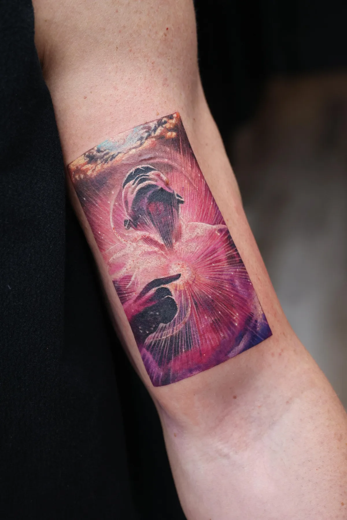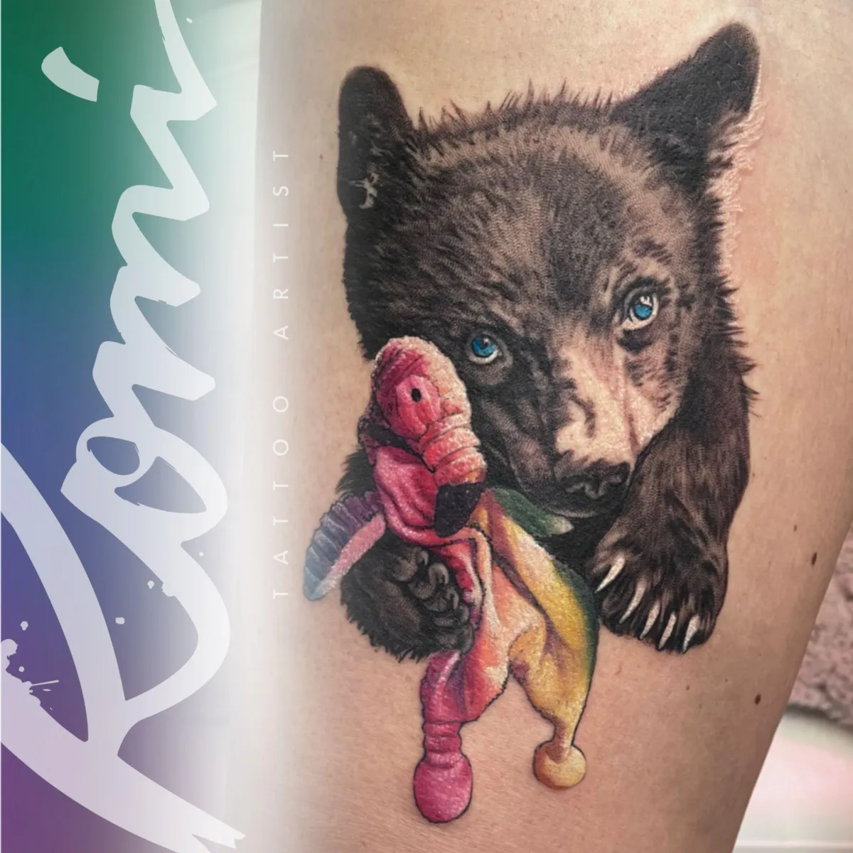 Romi has been a tattoo artist for 15 years specialising mainly in black and grey and coloured hyper-realism, but she also has a huge passion for other styles such as oil painting, surrealism or sketch drawings/ illustrations.